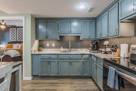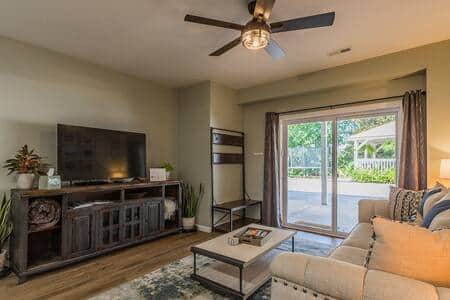 Open floor plan with a door to the bedroom, bathroom, and laundry area for privacy.