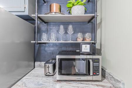 • Coffee and Tea station – coffee (regular & decaf), tea, hot cocoa, cream, and sugar included. There is a Keurig and a French Press available to you. There is a filtered water pitcher in the refrigerator.