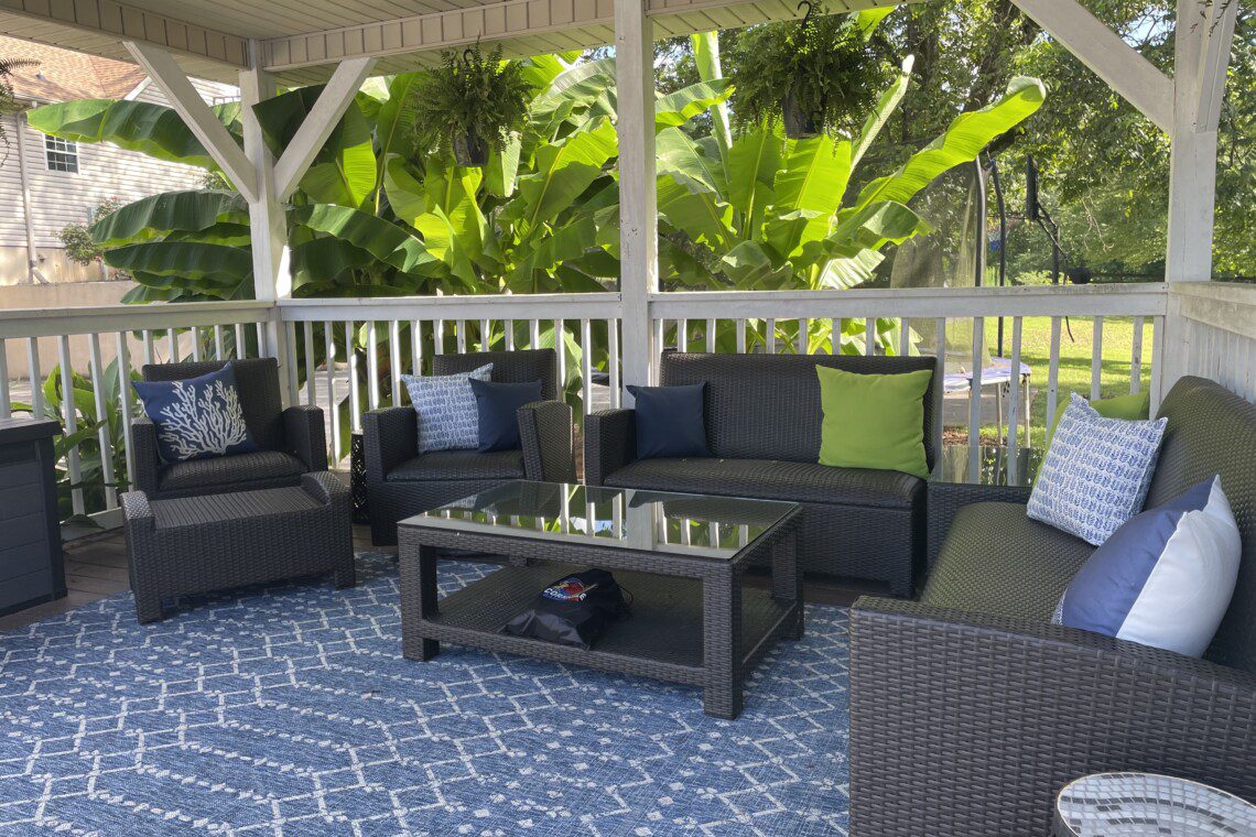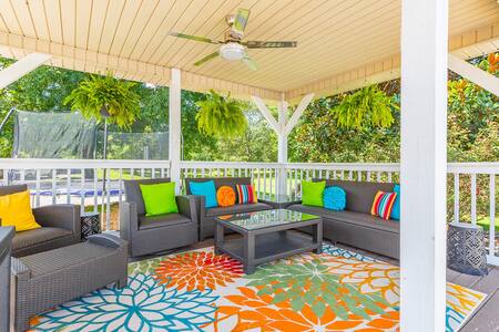 The poolside gazebo/cabana has outdoor furniture which is great for lounging, afternoon naps, or casual dining. Perfect if you would like to get out of the sun for a bit or curl up with a glass of wine or sweet tea (hey, it’s the South!) and read a good book while the kids play in the pool.