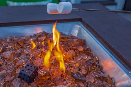 Want a cozy fire and a cocktail or S’mores with the kids? Dining al fresco? The patio area is stocked with a propane fire table, 4 lounge chairs, and an outdoor dining area. A mural wall has been painted to showcase the beautiful mountains in the area.