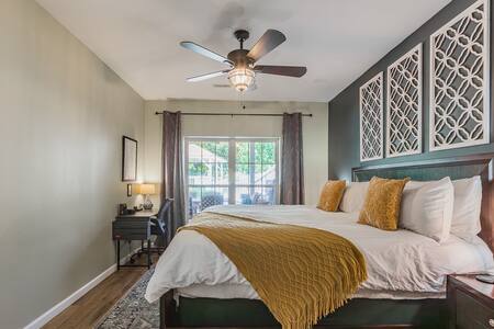 Black-out curtains, earplugs, and a ceiling fan are available to ensure you have an amazing night’s sleep.
